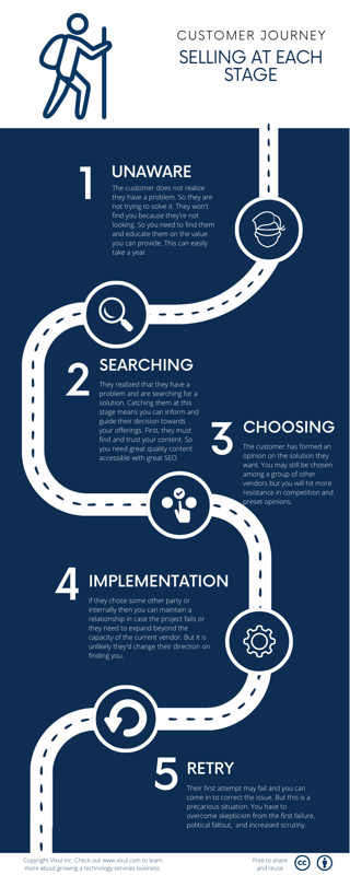 On the flip side, if you wait till after the customer has settled on a solution you will have a harder time gaining acceptance. You will likely be considered as one among a group of vendors. The customer through their research may have made some incorrect decisions and you would have to correct them.