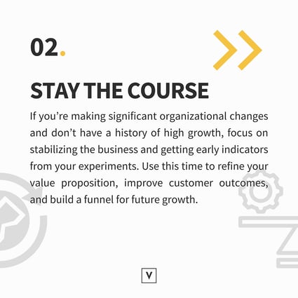 If you're making significant organizational changes and don't have a history of high growth, then assuming immediate growth may put undue pressure on you. Instead, focus on stabilizing the business and getting early indicators from some of your experiments.