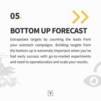 You can also set your targets based on a bottom-up forecast. You extrapolate targets by counting the leads from your outreach campaigns. Building targets from the bottom up is extremely important when you have had early success with go-to-market experiments and need to operationalize and scale your results.